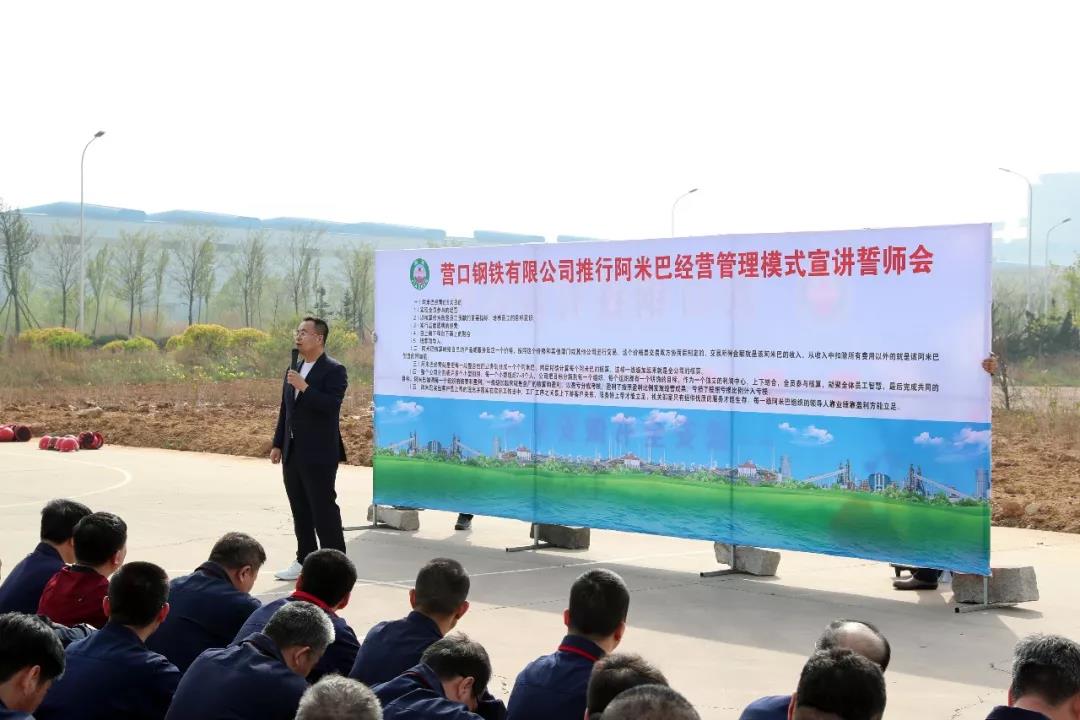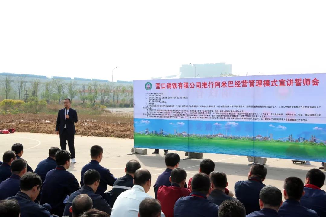 2019年5月3日下午,營鋼公司舉行推行阿米巴經(jīng)營管理模式宣講誓師大會,集團(tuán)總裁孫朝英、集團(tuán)副總經(jīng)理左文朝、營鋼公司副總經(jīng)理李朔等公司領(lǐng)導(dǎo),及各廠廠長、各部門領(lǐng)導(dǎo),阿米巴小組負(fù)責(zé)人等388人參加。